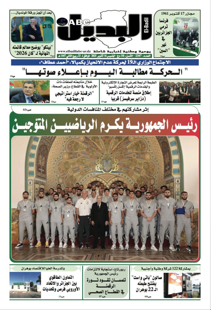 أشرف رئيس الجمهورية، السيد “عبد المجيد تبون”، اليوم الأربعاء بالجزائر العاصمة، على حفل تكريم الرياضيين الجزائيين المتوجين في البطولة العالمية…