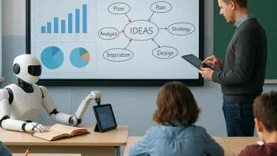 (7)- عندما نقول ان الذكاء الاصطناعي سيكون مركزيا في عملية لتعليم، لا نقصد بهذا القضاء على عمل مهنة المعلم بل ايجاد تسهيلات كبيرة للمعلم والطالب. من هذه التسهيلات: