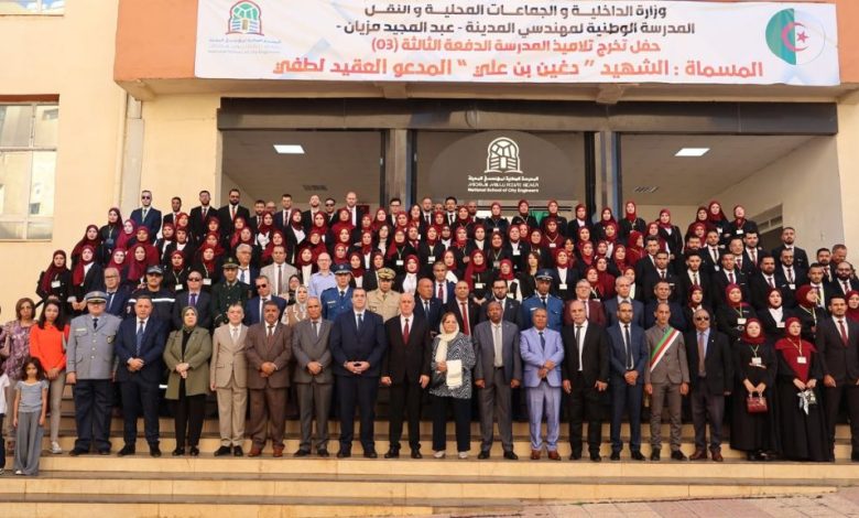 أشـرف والي ولاية تلمسان، رفقة المدير العام للموارد البشرية والتكوين والقوانين الأساسية بوزارة الداخلية والجماعات المحلية والنقل، على تخرج الدفعة الثالثة للمدرسة الوطنية لمهندسي المدينة “عبد المجيد مزيان” بولاية تلمسان، حيث تتكون هذه الدفعة من 227 تلميذا، منهم برتبة مهندس دولة في التسيير التقني والحضري (112)، ومفتش رئيسي للنظافة والنقاوة العمومية والبيئة (115).