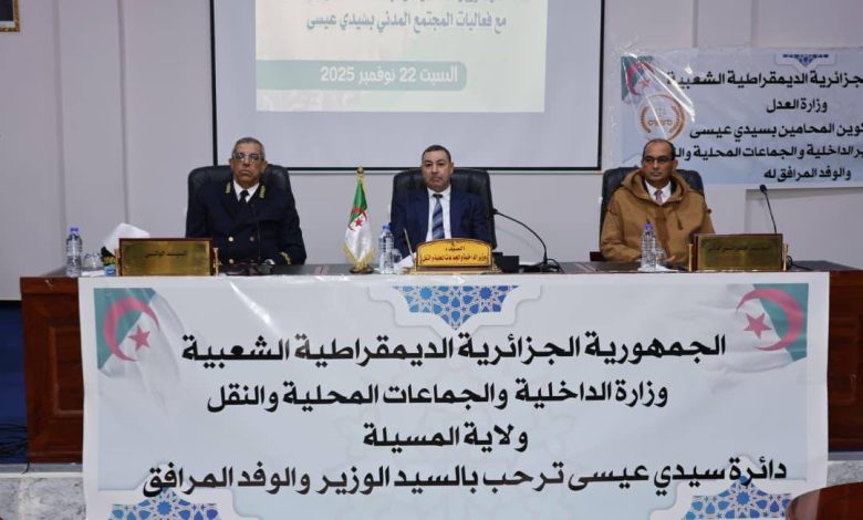 تطرق وزير الداخلية والجماعات المحلية والنقل، السيد “السعيد سعيود”، خلال اللقاء المحلي الذي جمعه بفعاليات المجتمع المدني لبلدية سيدي عيسى بولاية المسيلة، اليوم السبت، إلى أبرز القضايا والمواضيع المتعلقة بمتابعة التكفل بآثار التقلبات الجوية التي شهدتها عدد من بلديات الولاية، فضلا عن تناوله مواضيع تتعلق بالتنمية المحلية.