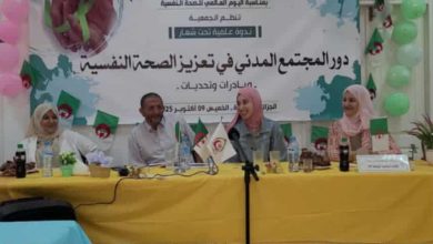تقام ندوة علمية بمناسبة اليوم العالمي للصحة النفسية،بعنوان “دور المجتمع المدني في تعزيز الصحة النفسية مبادرات وتحديات”، بالإقامة الجامعية “معالمة…